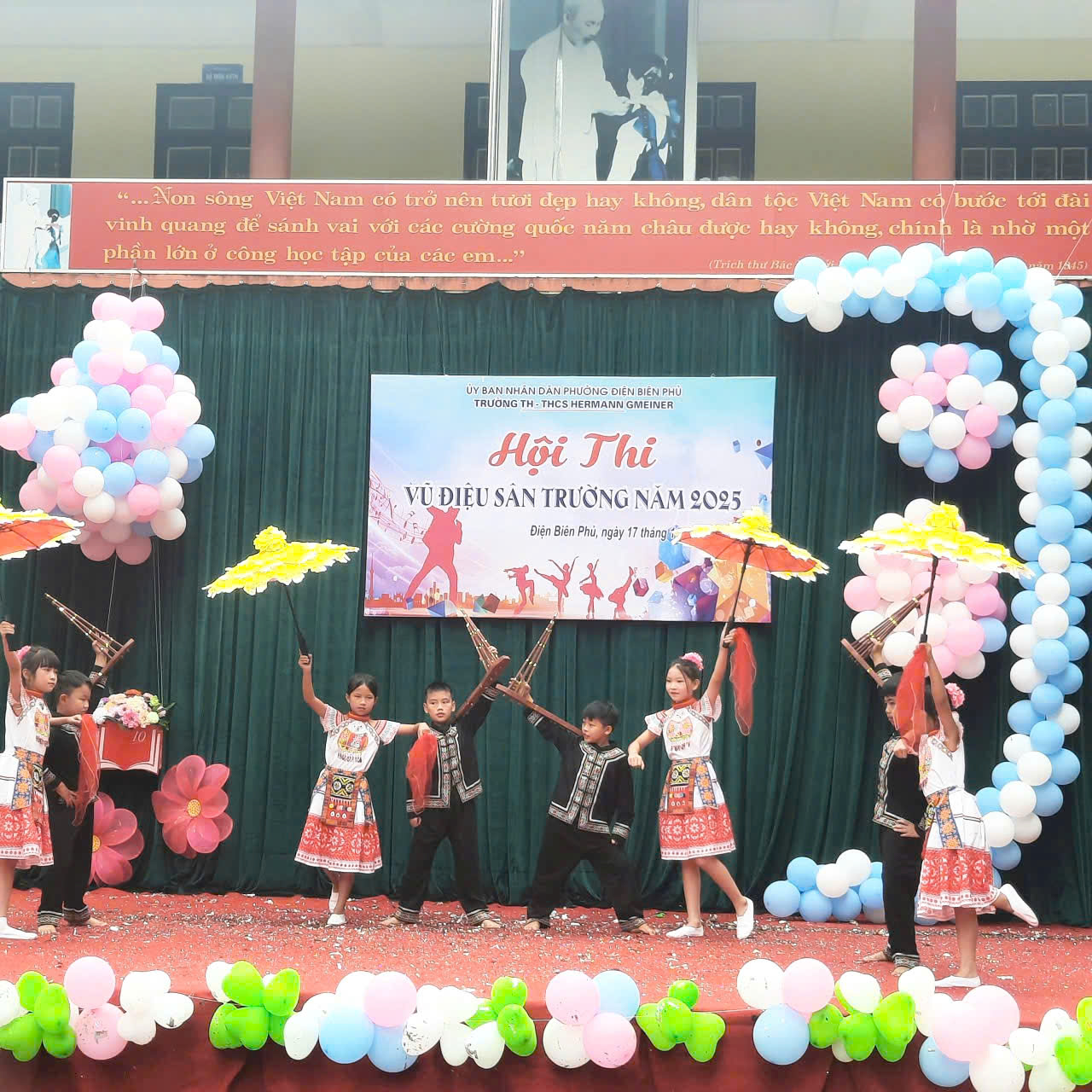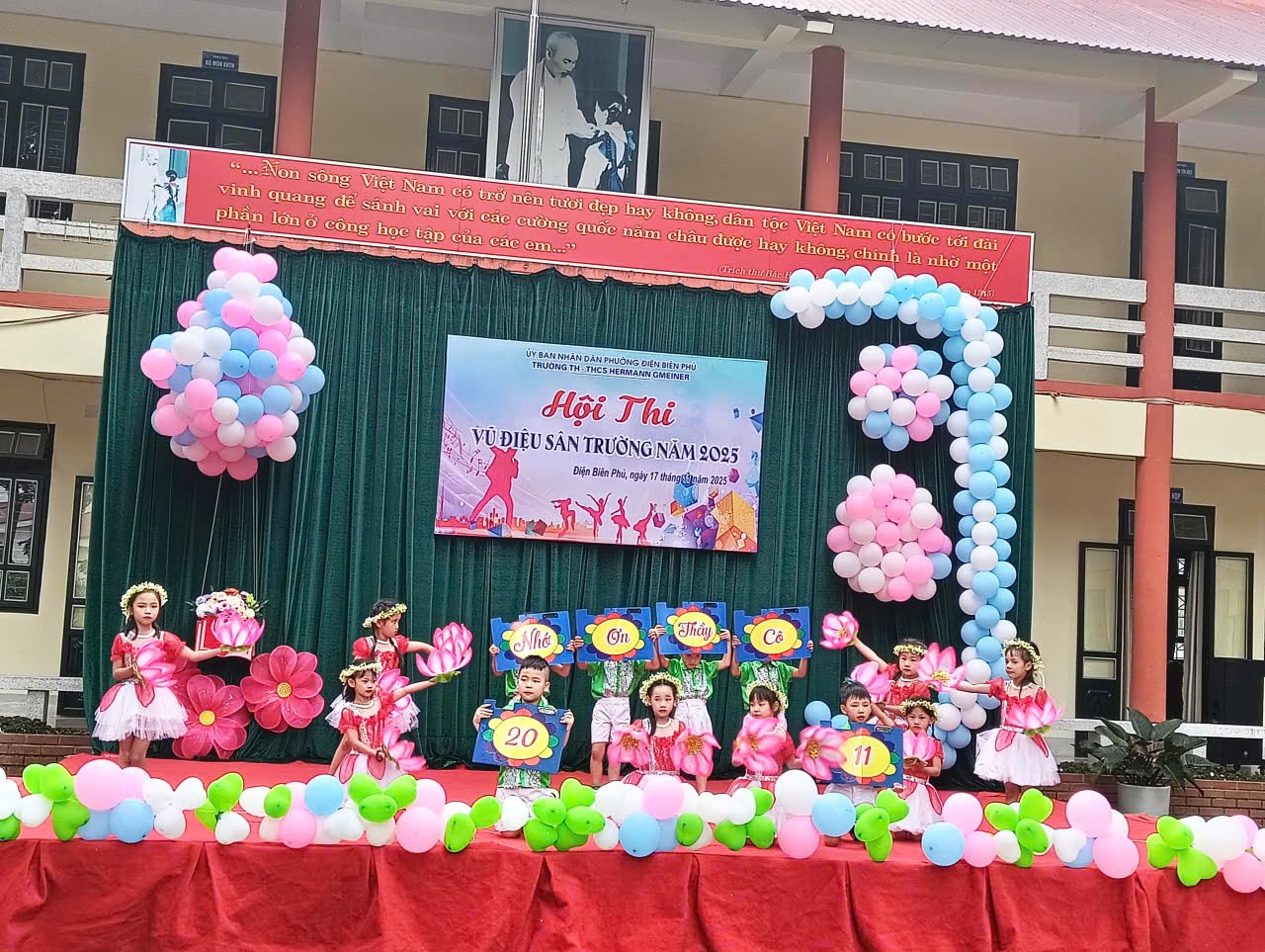 Sáng ngày 17/11/2025, sân trường TH-THCS Hermann Gmeiner thực sự bừng sáng trong không khí náo nhiệt và đầy hứng khởi của hội thi Vũ điệu sân trường – hoạt động đặc biệt ý nghĩa nhằm hướng tới kỷ niệm 43 năm Ngày Nhà giáo Việt Nam 20/11/1982 – 20/11/2025. Đây không chỉ là một sân chơi nghệ thuật dành cho học sinh, mà còn là dịp để các em gửi gắm tình yêu quê hương đất nước, ơn Đảng và Bác Hồ vĩ đại, sự biết ơn chân thành tới quý thầy cô – những người đã tận tụy đồng hành trên hành trình tri thức.